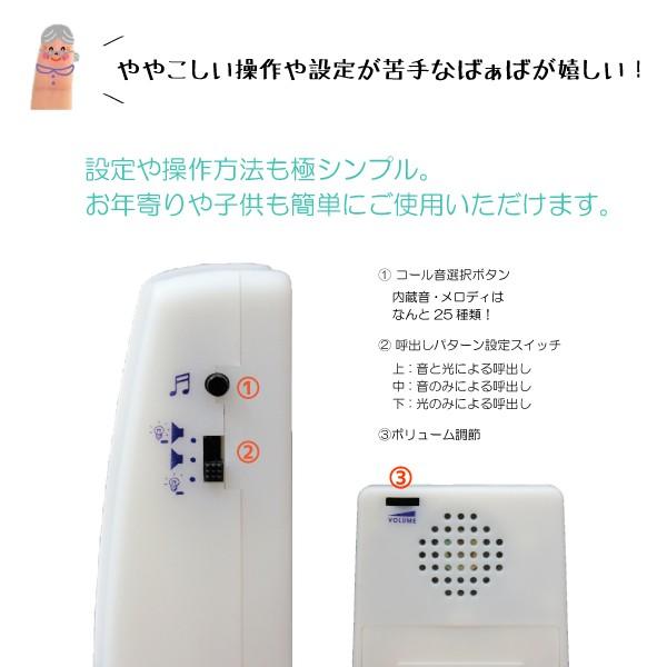 ワイヤレス チャイム 電池式 光と音でお知らせ 25音種 簡単設置 海外並行輸入正規品 呼び出しベル 呼び鈴 インターホン 716 コードレスチャイム